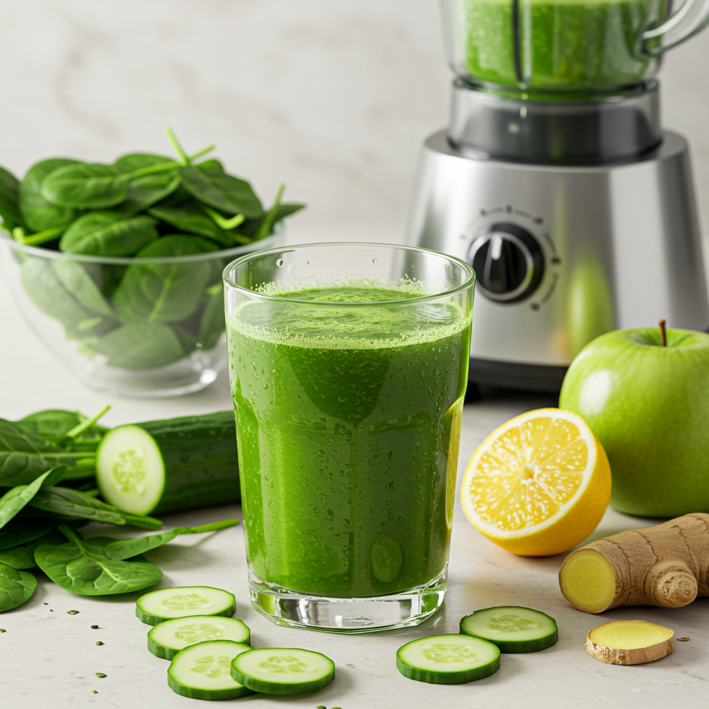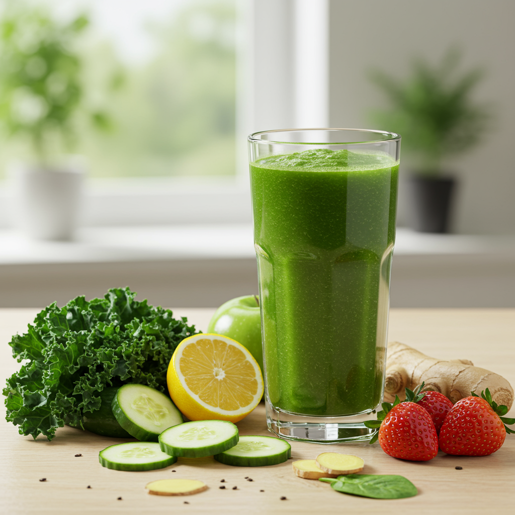 ③ 활력 UP! 그린 스무디 (케일, 시금치): 풍부한 식이섬유로 몸속 노폐물 제거