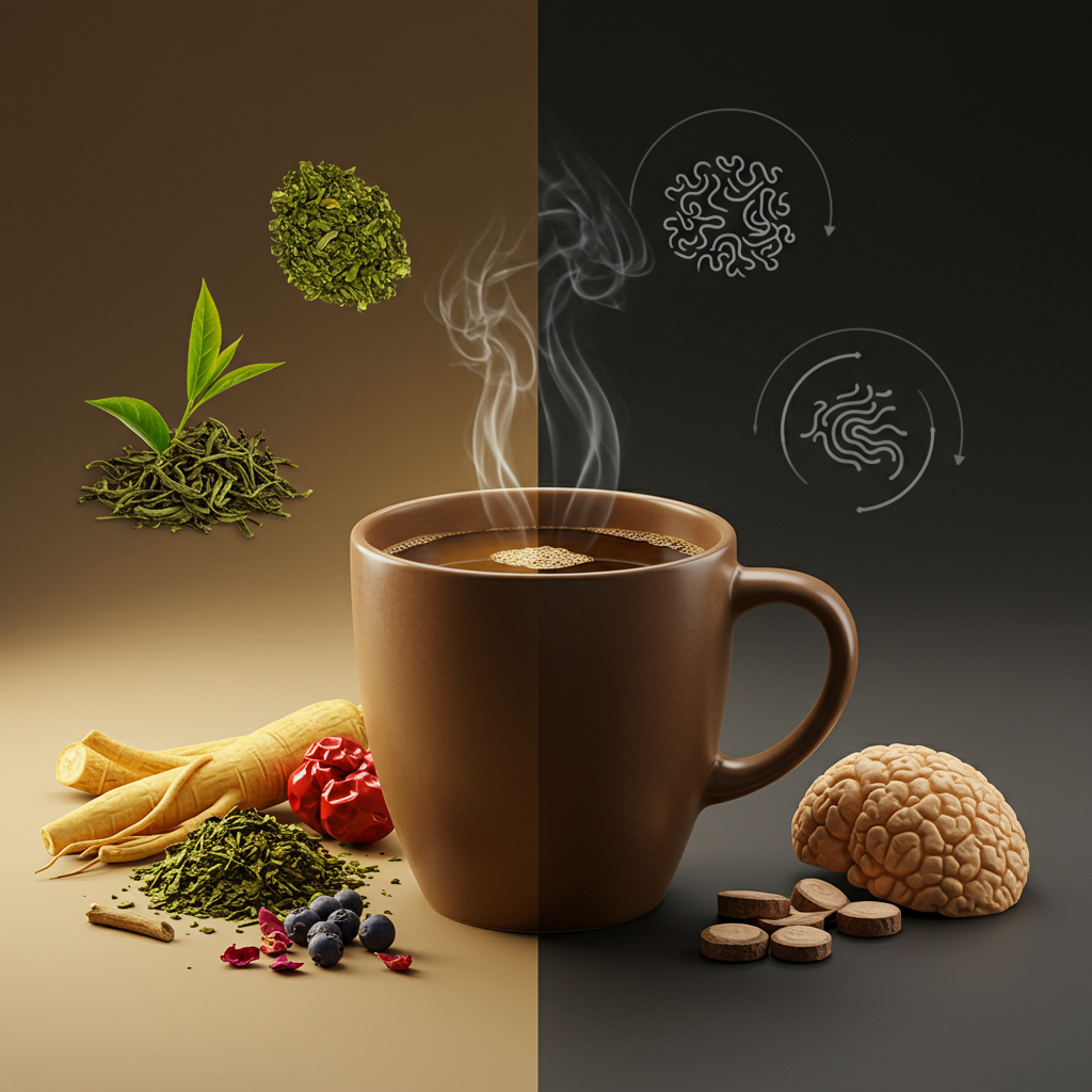 - 아답토젠 (Adaptogen): 홍경천, 아슈와간다 등 스트레스에 대한 신체 저항력을 높여주고 정신적 피로를 줄여 집중력을 유지하는 데 도움을 주는 허브입니다.
