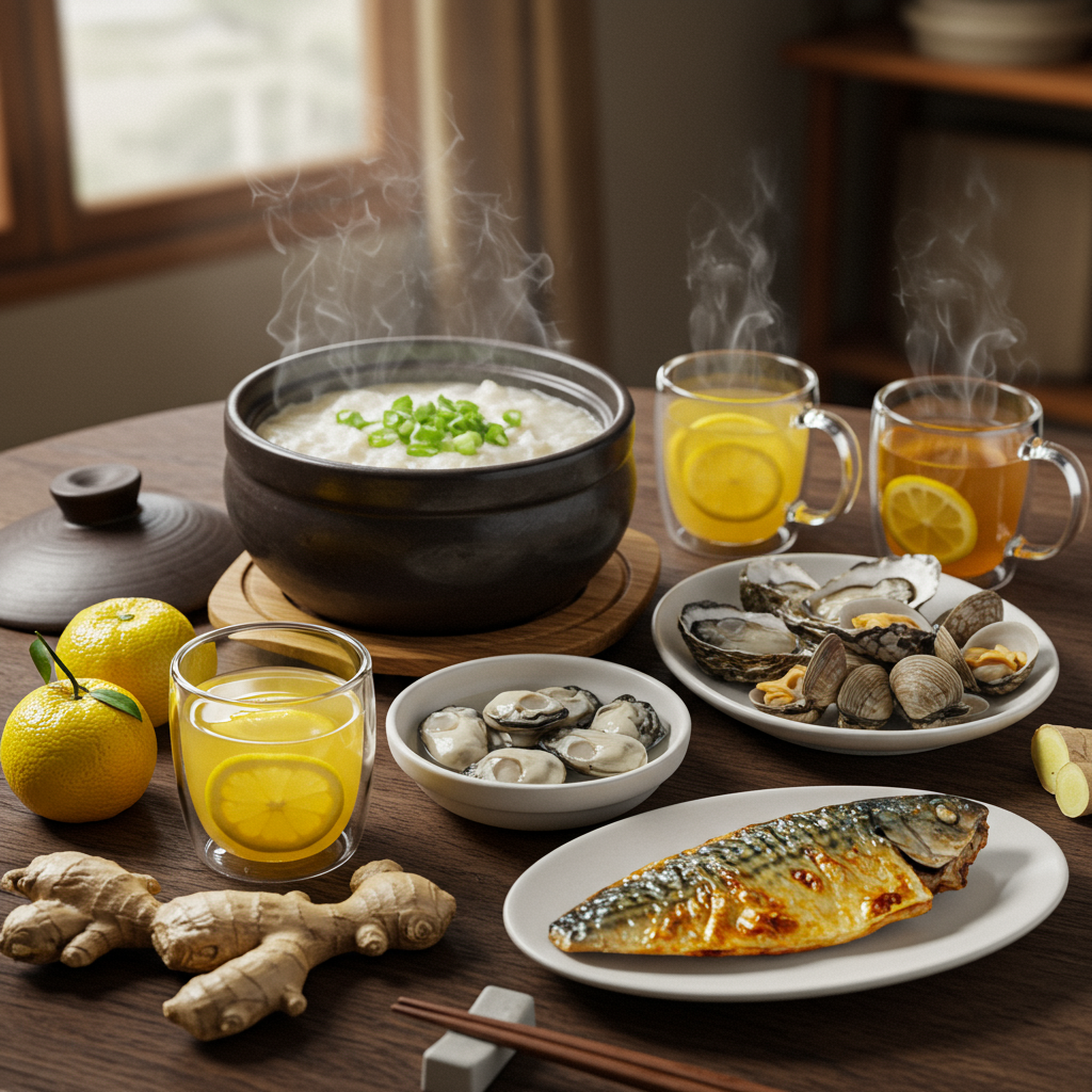 곰탕, 굴, 꼬막, 삼치 등은 겨울철 대표 보양식으로, 단백질과 지방이 풍부하여 체온 유지와 원기 회복에 도움을 줍니다. 굴과 꼬막은 가을부터 겨울까지 제철인 해산물로, 철분과 아연이 풍부해 빈혈 예방과 면역력 강화에 좋습니다. 또한, 유자차, 생강차와 같은 따뜻한 차는 몸을 데워주고 혈액순환을 촉진하여 수족냉증 완화에 효과적입니다. 유자의 비타민 C와 생강의 진저롤 성분은 겨울철 감기 예방에도 큰 도움을 줍니다.